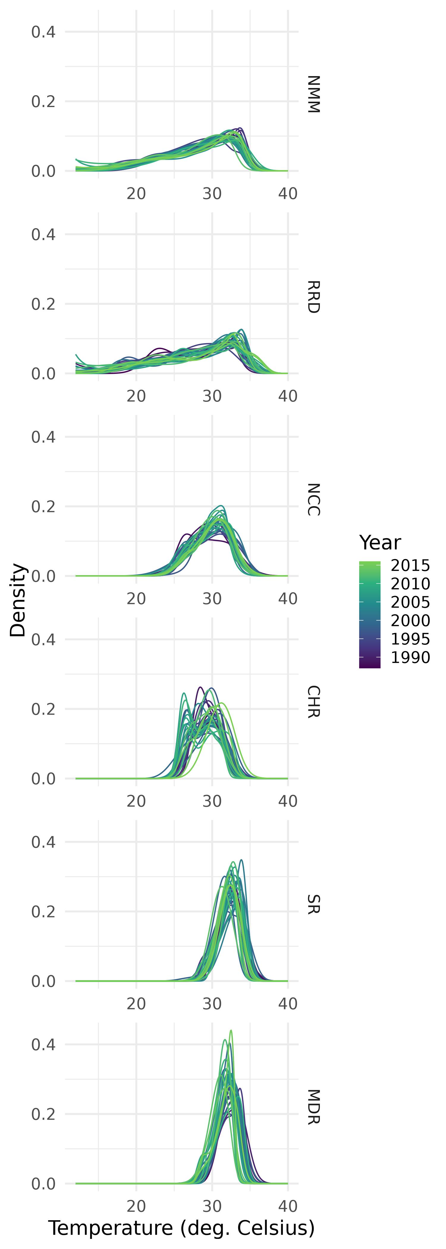 x = "Temperature (deg. Celsius)", y = "Temperature (deg. Celsius)"